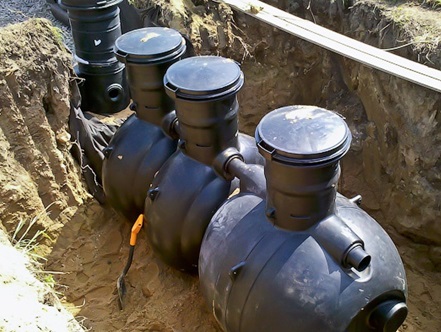 - Монтаж переливов: установка труб на 10 см ниже трубы, через которую стоки поступают в резервуар.